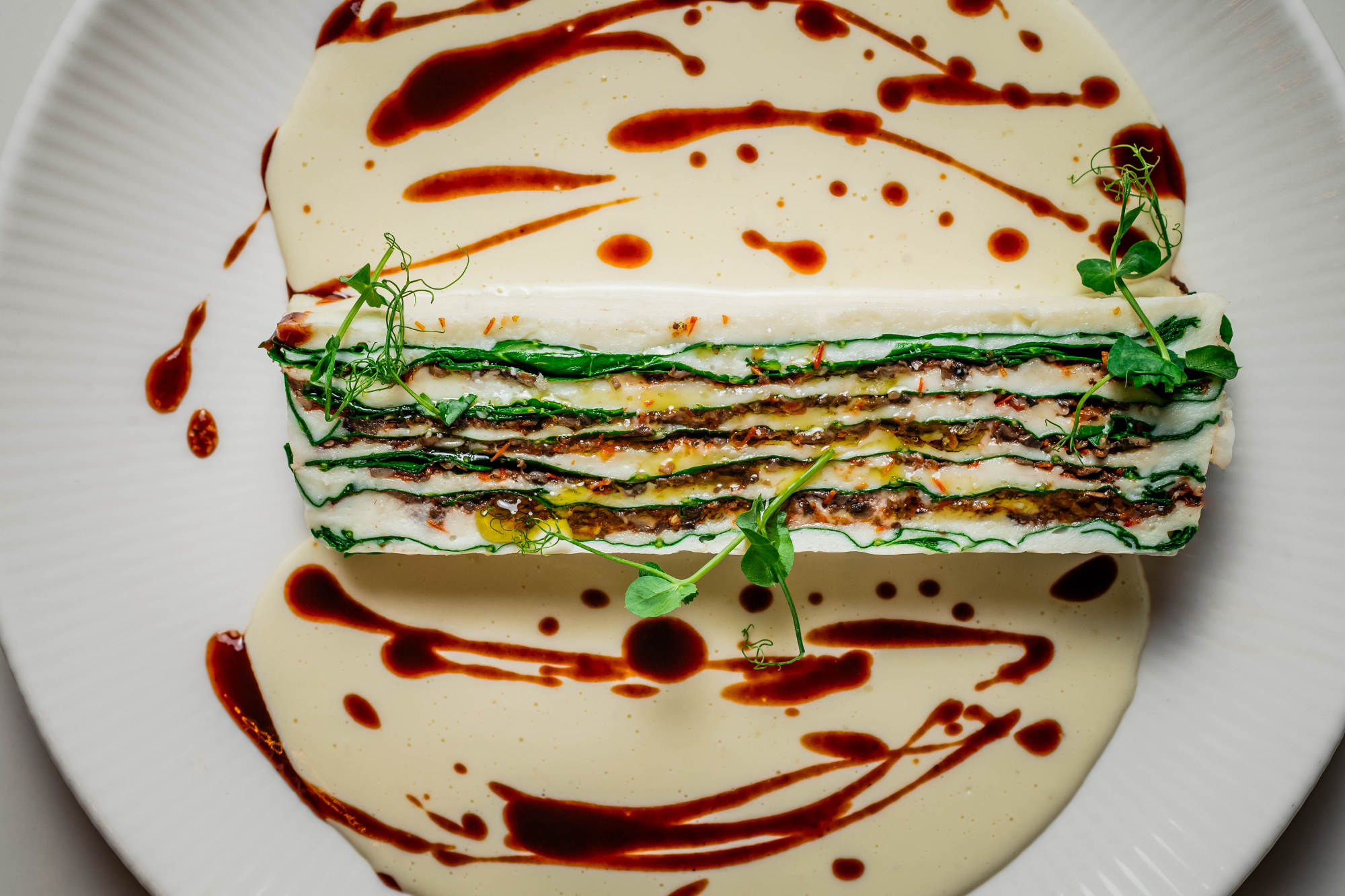 • Lasanha vegana | massa fresca vegana, ragu de cogumelos, glace de